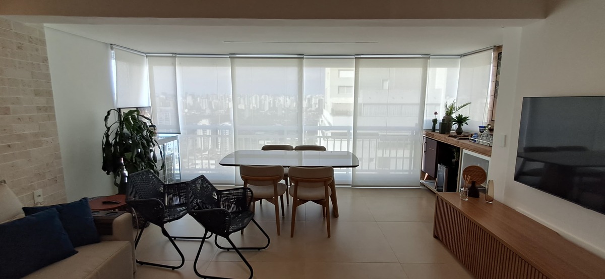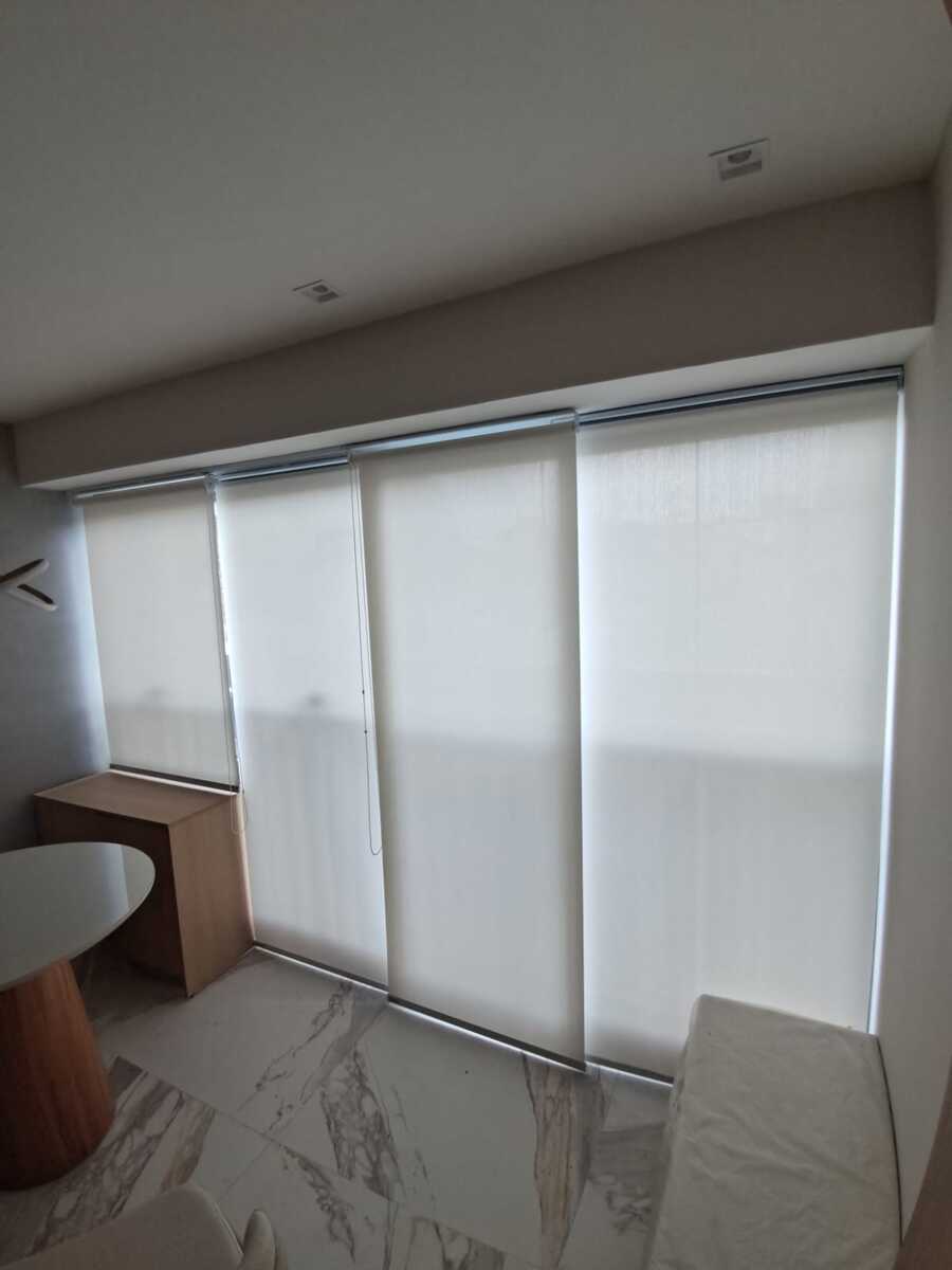 Indicado para grandes vãos, como portas de vidro ou janelas amplas, o painel persiana possui painéis de tecido que se movimentam lateralmente. Sua estética contemporânea e a variedade de tecidos fazem dela uma excelente escolha para ambientes amplos e modernos.